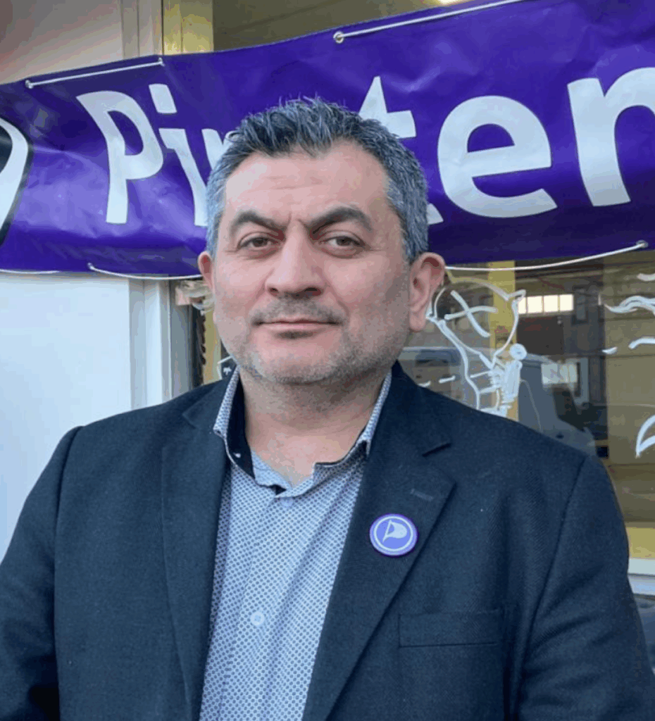 Kandidaten Gemeenteraadsverkiezingen 2026 Klik op de foto van een kandidaat voor meer informatie Mehmet Sagsu Lijsttrekker Piratenpartij Arnhem Joost Balk Bestuurslid Fabian de Mello Partijlid Ali Dilekçi Lijstondersteuner Sinan Sahin Lijstduwer Cemal Mekan Lijstondersteuner